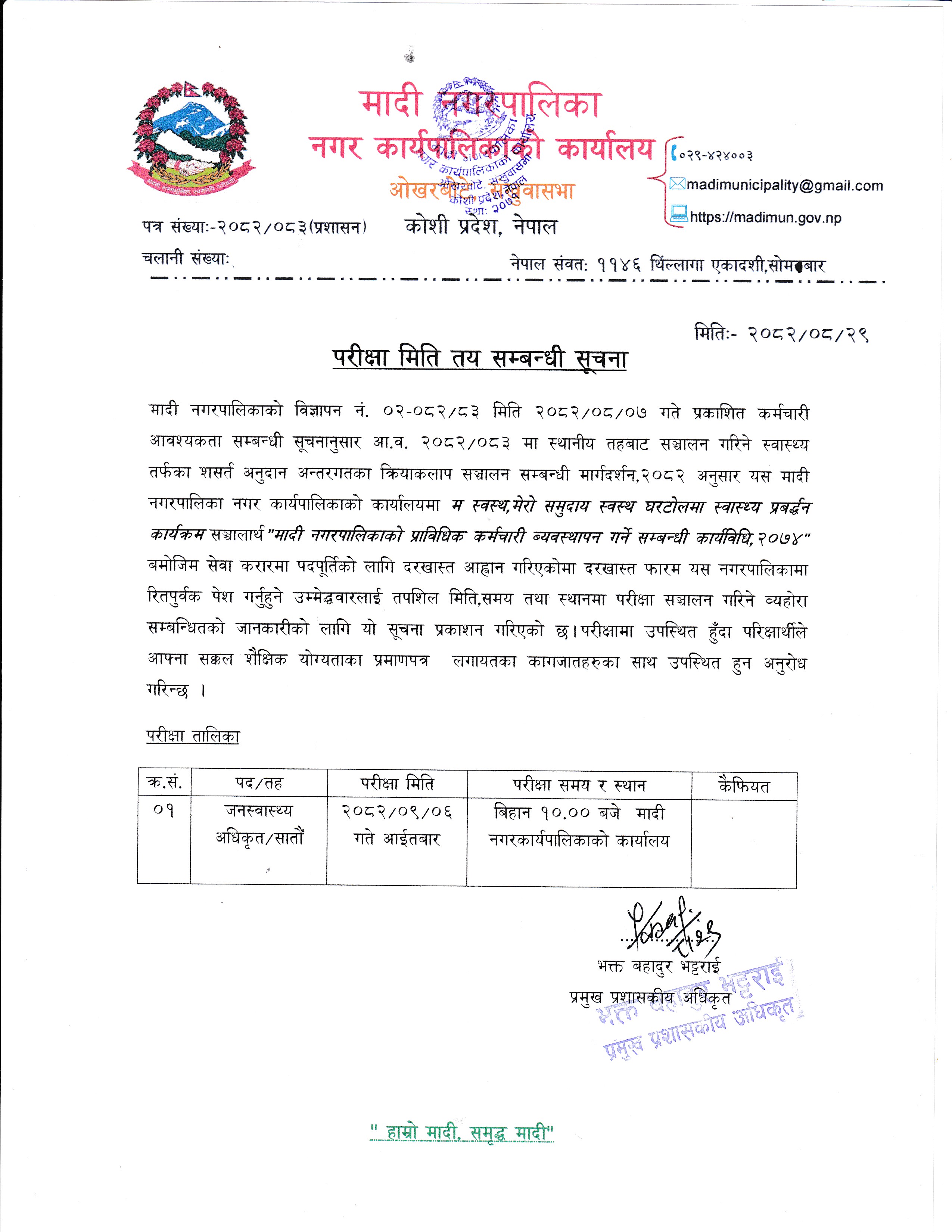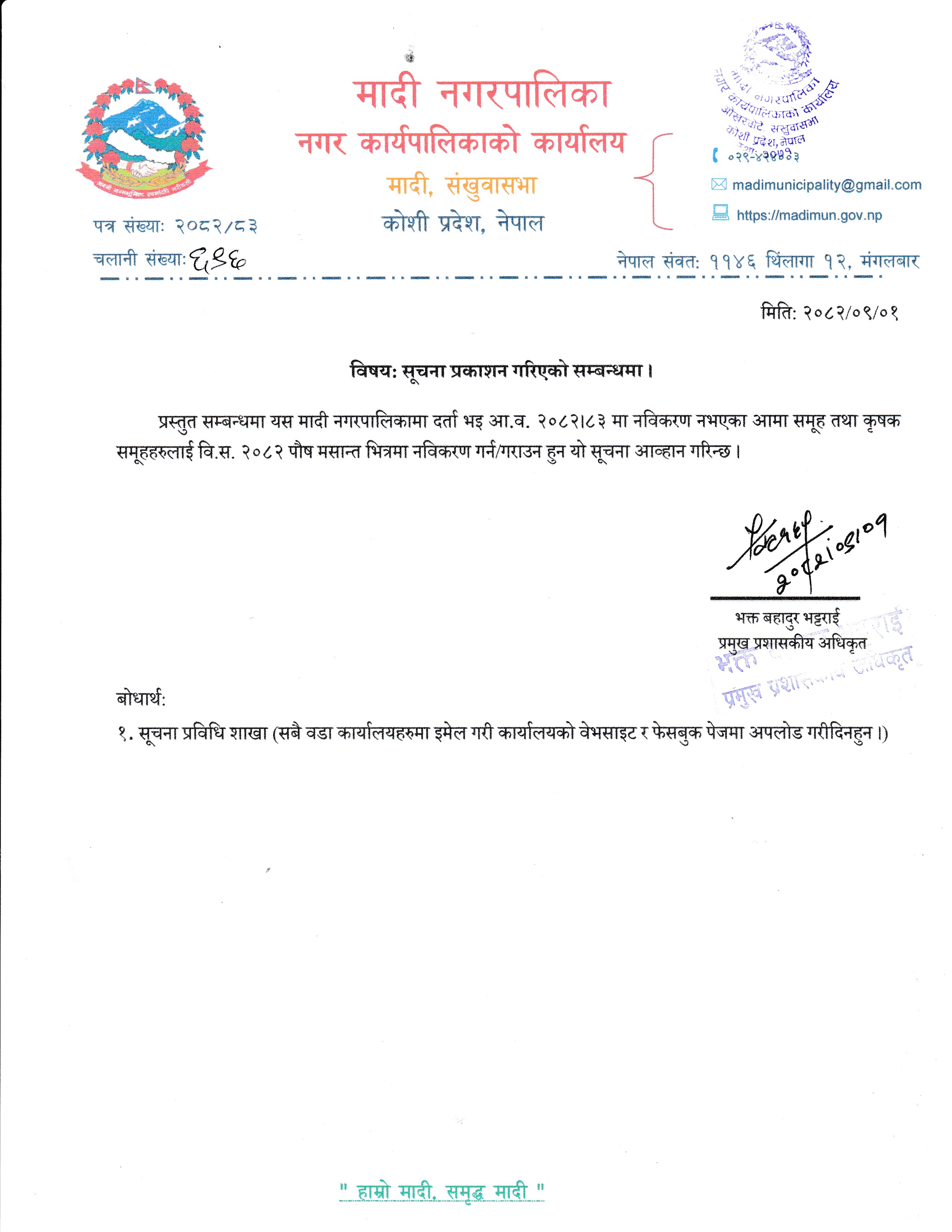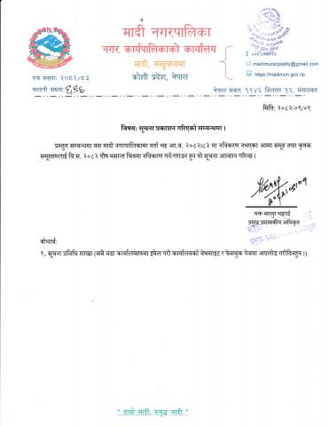 मादी नगरपालिकाको सूचना !!