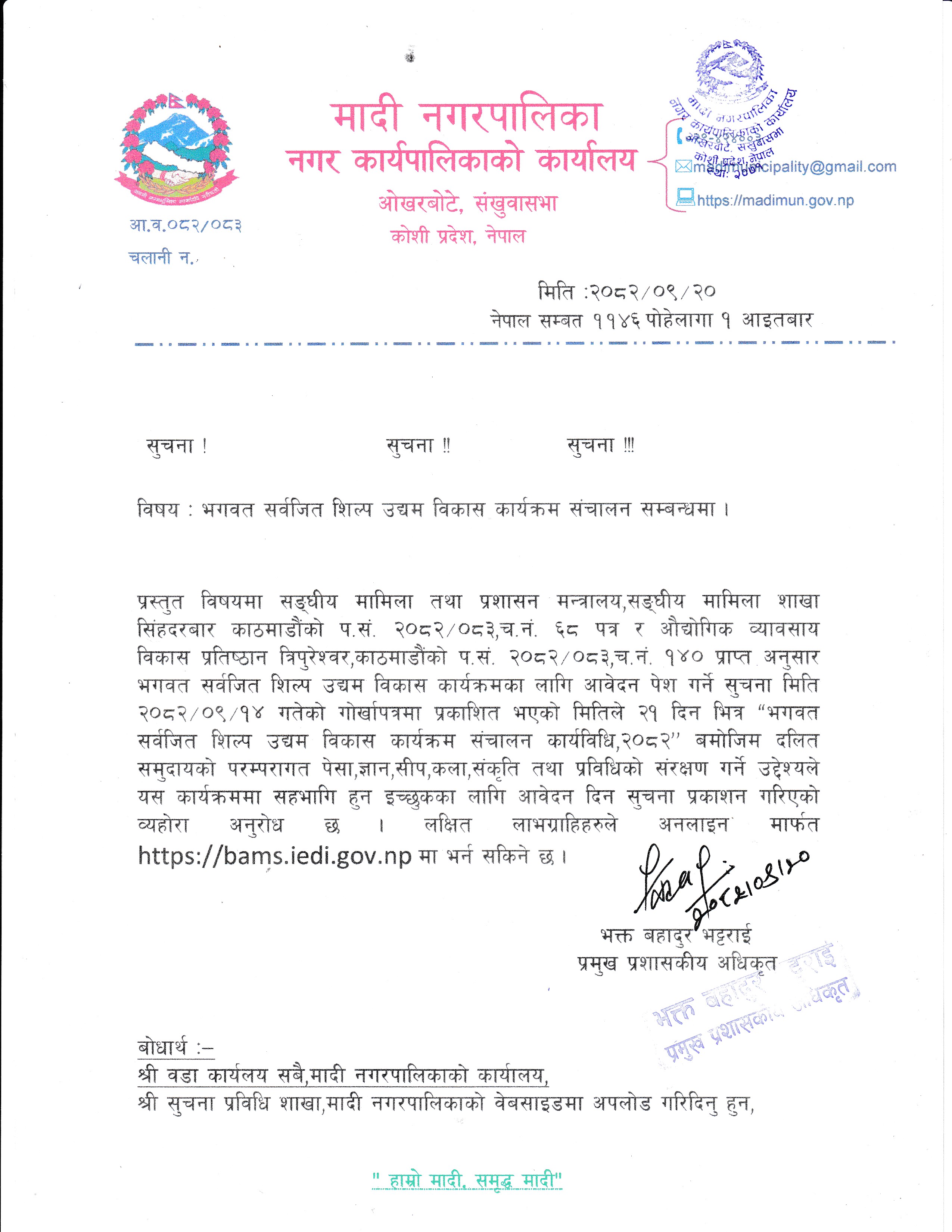 भगवत सर्वजित शिल्प उद्दम विकास कार्यक्रम संचालन सम्बन्धमा ।