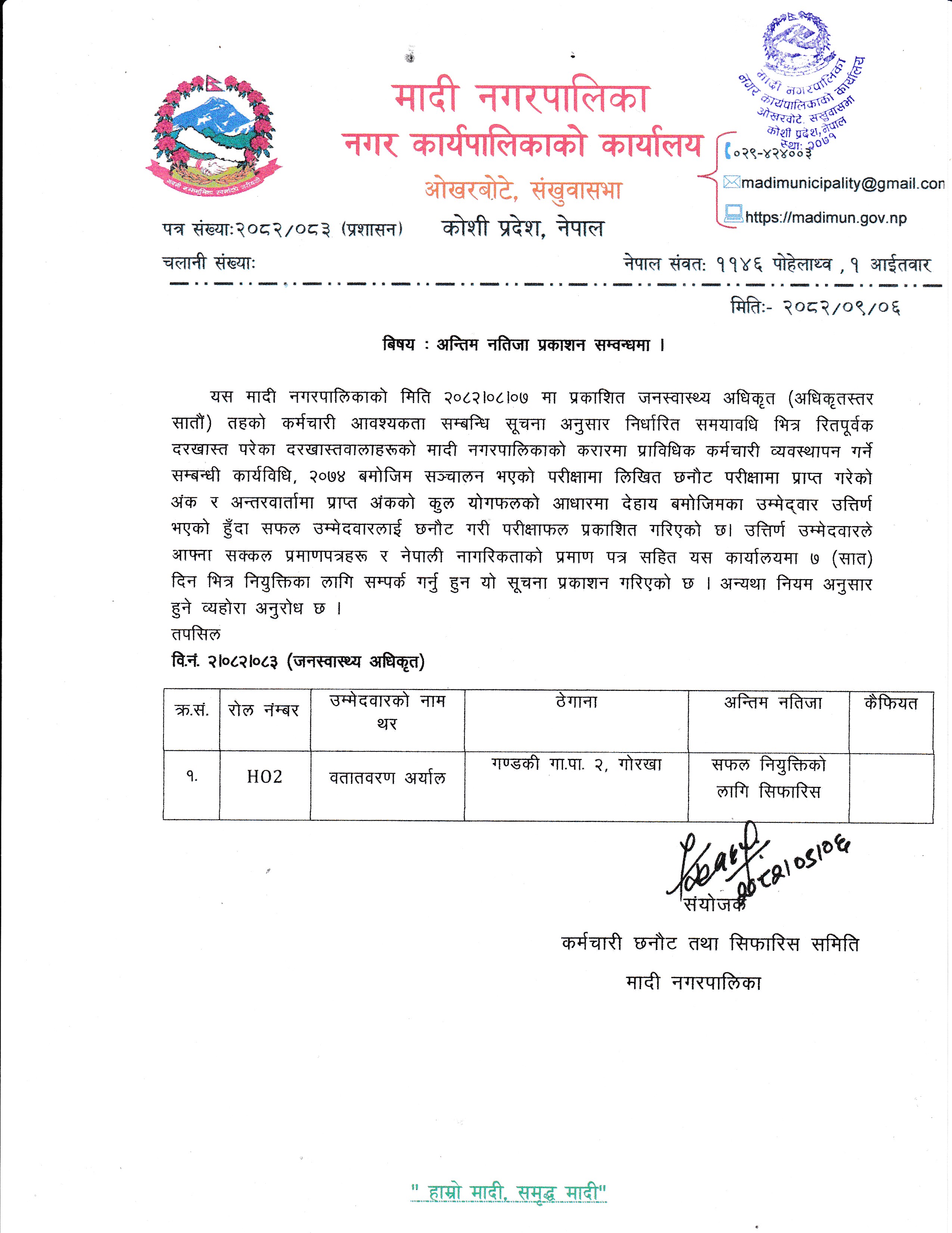 अन्तिम नतिजा प्रकाशन सम्वन्धमा ।
