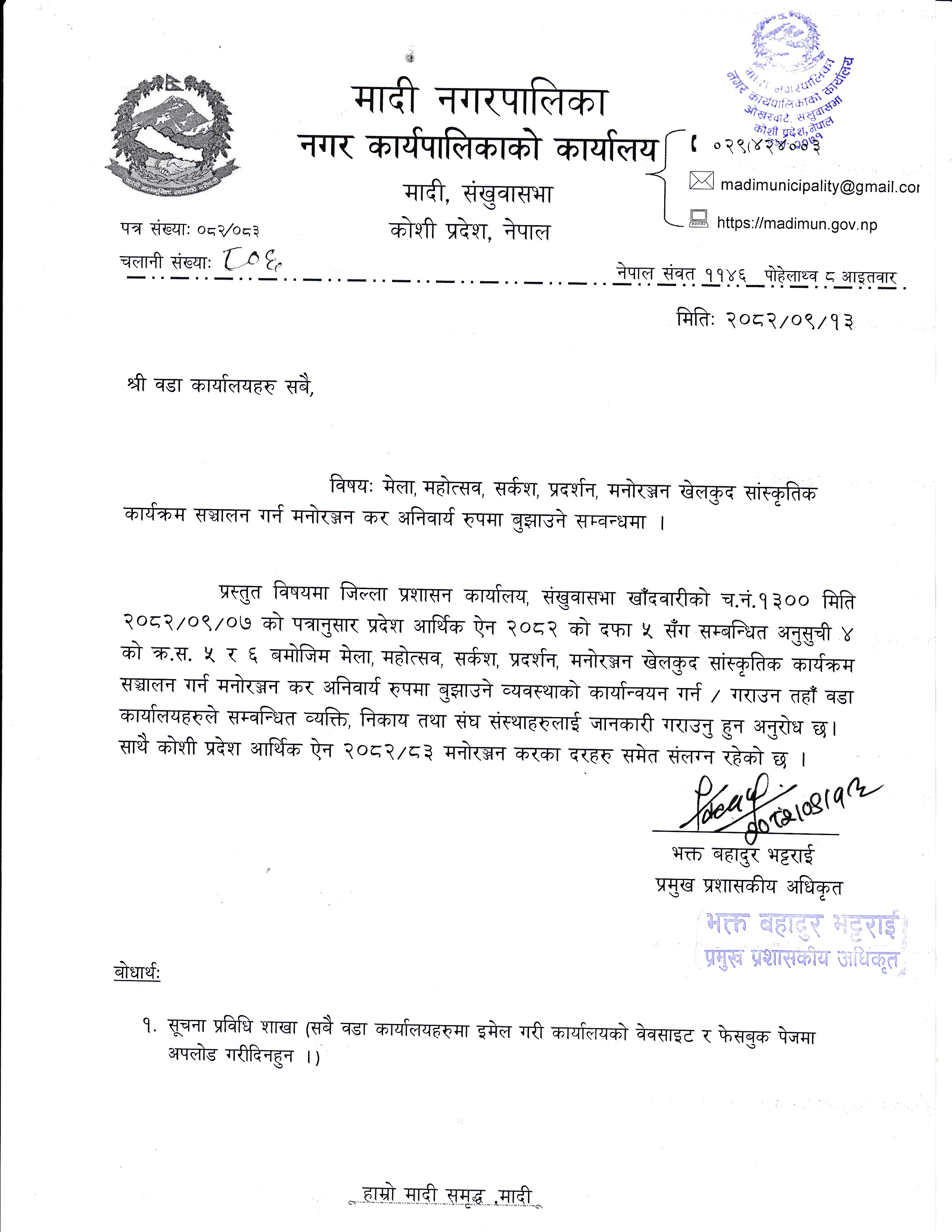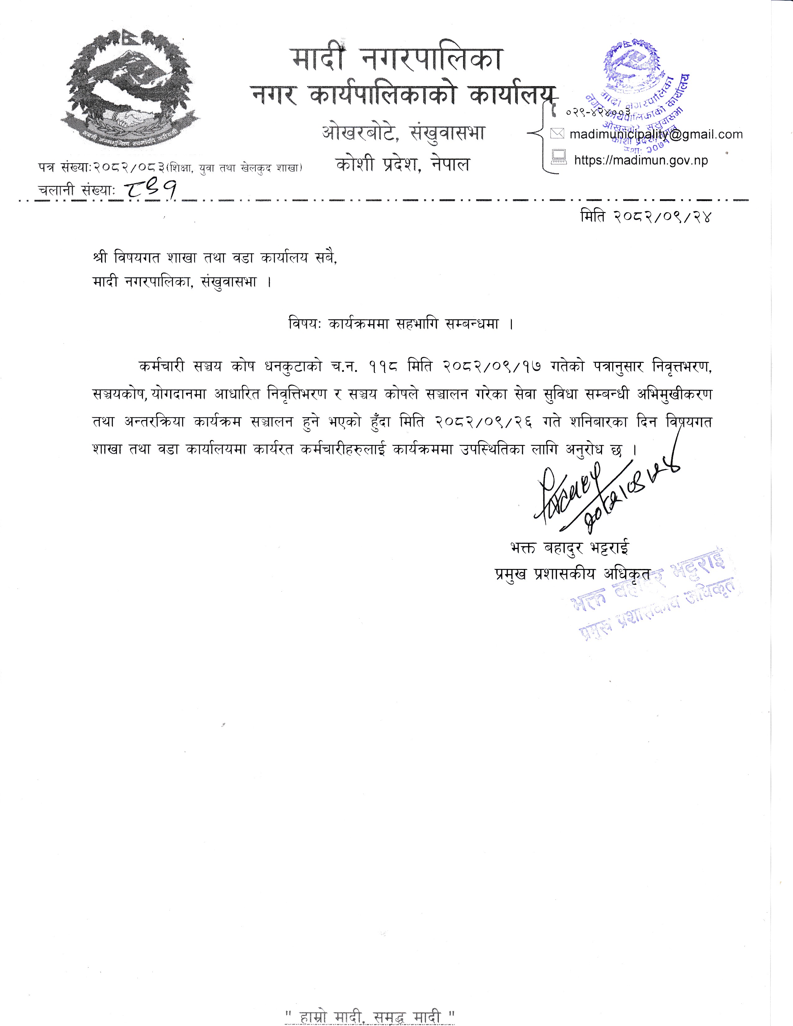 कार्यक्रममा सहभागि सम्बन्धमा ।