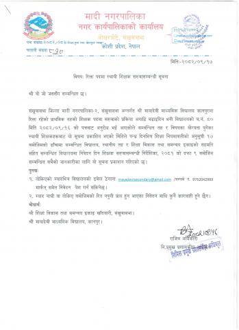 रिक्त पदमा स्थायी शिक्षक सरुवा सम्वन्धी सूचना ।