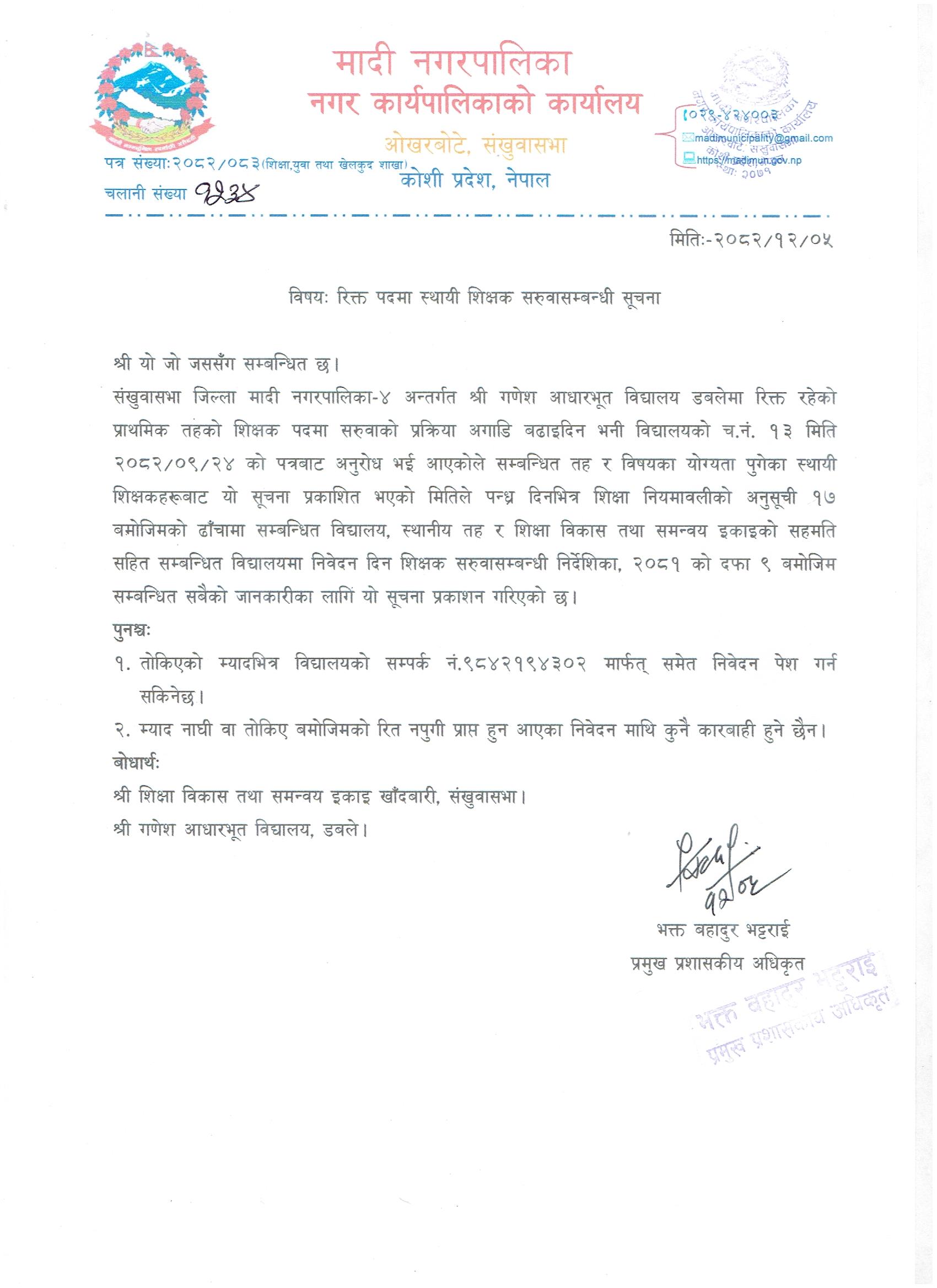 मादी नगरपालिकाको सूचना !!