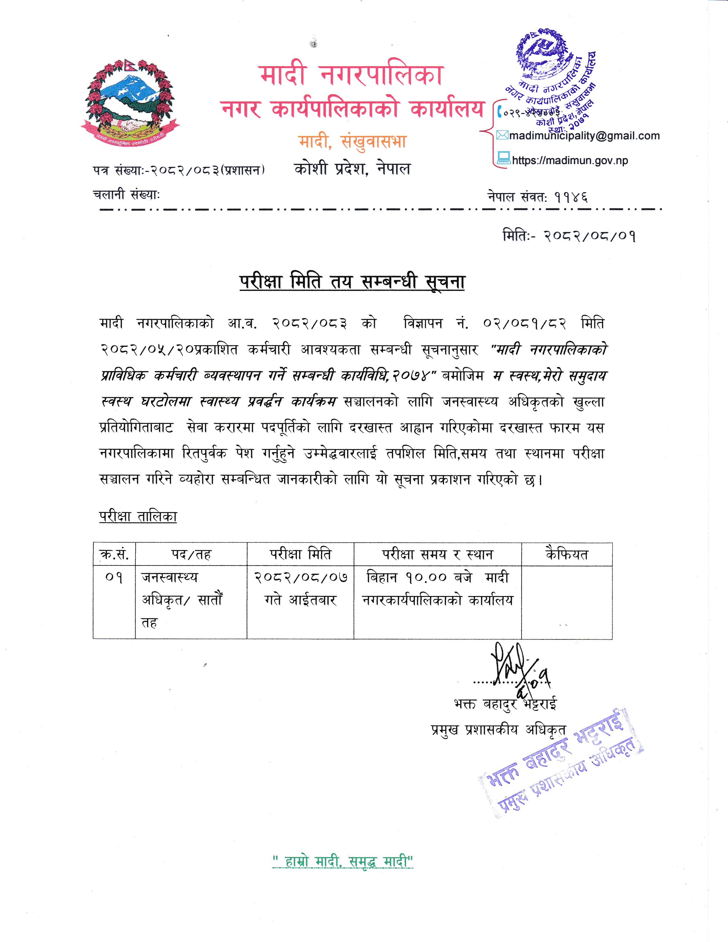 » परीक्षा मिति तोकीएको सम्बन्धमा ।