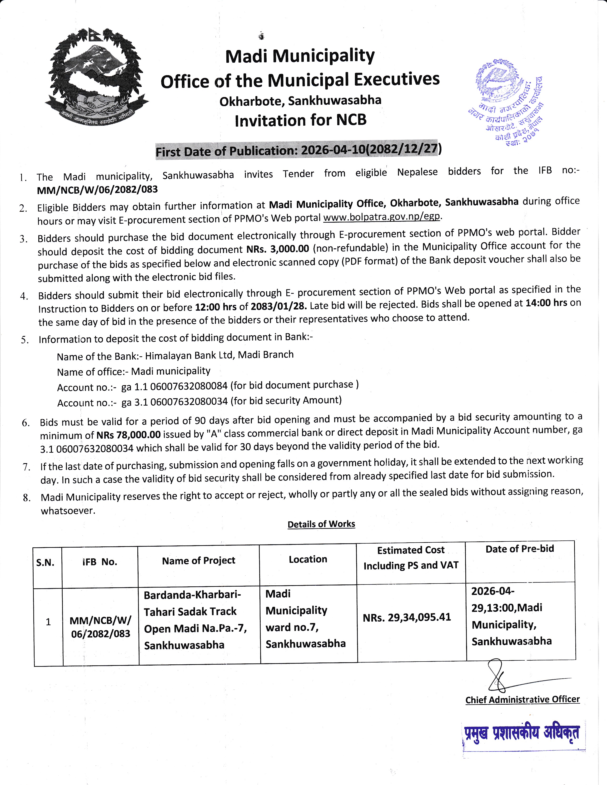 सार्वजनिक खरिद/बोलपत्र सूचना